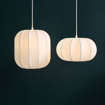Inspiré des suspensions Suédoises en soie, ces luminaires aux formes douces et évanescentes habillent l’espace avec légèreté. Une lumière chaude et diffuse s'en dégage.