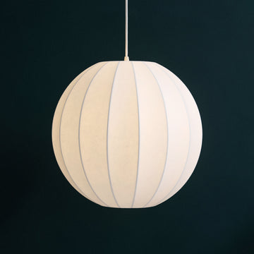 Inspiré des suspensions suédoises en soie, ce luminaire aux formes douces et évanescentes habille l’espace avec légèreté. Une lumière chaude et diffuse s’en dégage.